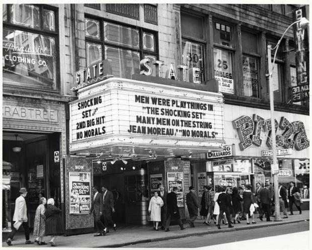 When No Morals landed in Boston, a few years before I was born twenty miles away, it was at the since-demolished State Theatre at a prime downtown location at the corner of Washington and Boylston Streets. The top photo is one of a series of images I gleaned from Google that taken together suggest the continual architectural and social transfiguration of an urban center over a century and a half. Going back that far, we find the original venue on that spot was Beethoven Hall. I love that name but by scanning that ads they ran (several are up on Wiki Commons) the programming had little to do with Ludwig Van and a lot to do with late 19th century diversions. There were comic operas, freak shows, minstrel singers and even Greco-Roman wrestling. If there were such a thing as a time-travel bucket list, I would pencil in “The Great English Mesmerist” Annie de Montford and her “amusing entertainments of psychology.”