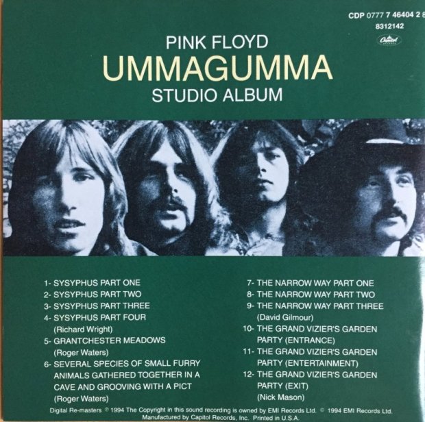 David Gilmour’s folksy acoustic guitar on “The Narrow Way” prefigures what Jimmy Page soon was getting at on Led Zeppelin III and the vocal part that follows presages the musical heights later attained on “Comfortably Numb”. Nick Mason never had a songwriting credit before Ummagumma and after hearing his aimless percussion workout, one could be forgiven for wondering where the writing was in this case. The only track that sinks lower is “Several Species of Small Furry Animals Gathered Together in a Cave and Grooving with a Pict,” a Roger Waters’ toss-off that sounds just like its title, which should be warning enough.
