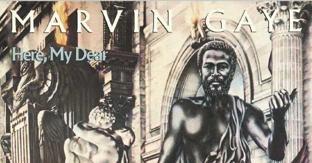 A review of Here, My Dear would not be complete without mentioning the exceptional (if suitably downbeat) cover art. Painter Michael Bryan had done album sleeves for the likes John Lennon, Rod Stewart and Bootsy Collins and his idea of incorporating Rodin’s sculpture The Kiss was met with approval by Gaye (“Put me in a toga”). The singer solemnly stands aside the iconic couple whose image is repeated on the back—this time they’ve caught fire inside the ruins of a columned courtyard while another statue, a grinning beast, sits on a pedestal bearing the legend “Pain and Divorce.” That’s only half of it. The inner gatefold shows a man’s hand giving over a token-sized LP to a woman’s hand above a Monopoly-like game board. Below her hand are gobs of cash, a house and a Cadillac. The male hand presides over a piano, a reel-to-reel tape recorder and a single dollar bill. Ouch!