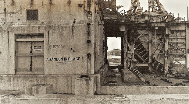 Although I’ve always been pre-disposed to notice the vestiges of a not-distant past (a trait that I have seemed to passed on to my son) this sensation never really had a name or focus for me until I saw (and bought) a copy of “Dead Tech: A Guide to the Archaeology of Tomorrow.” This book was first published in Germany in 1981 and an English version came out a year later, interestingly under the auspices of Sierra Club Books. With its enigmatic cover photo of a New York ocean liner terminal crumbling into itself on the Hudson River waterfront, “Dead Tech” had an immediate impact on me. Across nine themed chapters of evocative photographs by Manfred Hamm and historically insightful text by Rolf Steinberg, we are treated to a captivating catalogue of the recently defunct remains of world-war battlements, ships and airplanes, auto graveyards, abandoned space launch platforms, closed power plants and pleasure piers and quickly obsolete transportation systems.