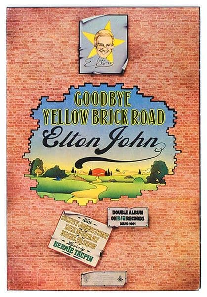 The album was recorded in two weeks in May of 1973 at France’s renowned Chateau d’ Herouville, the so-called “Honky Chateau” of a previous EJ album title. It was written almost as quickly—during a brief stay in Kingston, Jamaica where John and Taupin were holed up while trying to make arrangements (ultimately unsuccessful) to record there. The alacrity with which Goodbye Yellow Brick Road was conceived and committed to tape is pretty remarkable and may suggest a unifying theme. And while it is not strictly a concept album, the title and the cover illustration—Elton in satin jacket and platform shoes is seen stepping off a gritty sidewalk and onto that pedestrian byway that leads to the Emerald City—gives you a pretty good idea of the record’s semi-fixation on the fantasies and illusions that emanate from the silver screen.