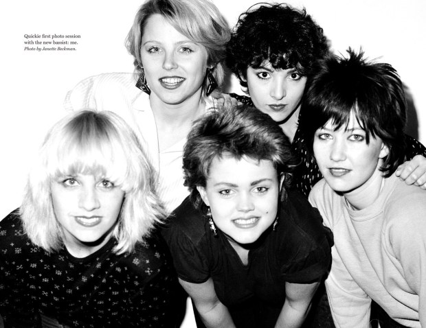 Like so many who make it big in show-biz and later write autobiographies, Valentine had early life complications. Born in 1959, her father was out of the picture by age three, and he would be a long time in making it back into her life. Her mother was a mini-skirted “babe” who enjoyed a good party—often with her teenage daughter along for the ride—while she wasn’t earning a degree at the Univ. of Texas. Valentine’s light-bulb musical moment came from seeing the pint-sized dynamo Suzi Quatro do her #1 UK hit (the raucous “Can the Can”) on TV while visiting her English grandparents. It wouldn’t be long until the she was chasing her own rock dreams in a high-school band, although after singing “Wild Thing” at an early show decided she wasn’t suited to be the main focal point.