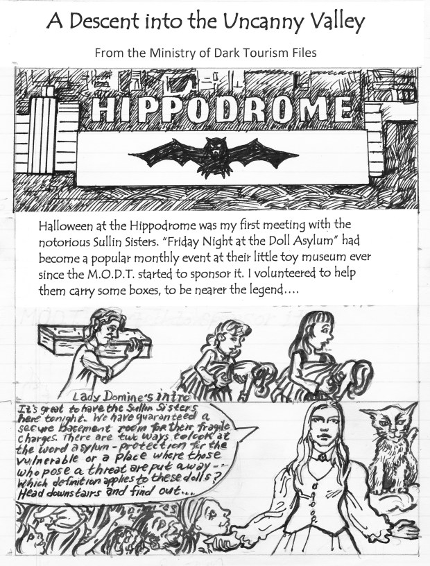 Here’s a little homemade seasonal comic from myself as writer and Eric Bornstein as the artist. It takes its cue from my work “The Ministry of Dark Tourism” part one of which is under way in graphic novel form with illustrator Ian J. Miller. More on that later and hope you can enjoy your socially-distanced Halloween! –Rick Ouellette