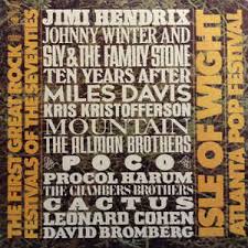 These contemplations took hold recently when I finally secured a copy of The First Great Rock Festivals of the Seventies fifty years after its 1971 release. As a young teen I eyed this whopping three-LP set the way a Little League pitcher may have seen Bob Gibson. It covered the summer-of-1970 Atlanta Pop Festival (sides 1 & 2) and the gargantuan Isle of Wight affair in the UK (sides 3-6). The names of the fourteen artists featured were center-aligned on the cover (Hendrix! Sly Stone! Allman Bros.!) but this was a little rich for my blood and my wallet at the time. Festival burnout was setting in post-Altamont and “First Great Rock Festivals” never came near the stature of the 3-LP Woodstock set (or even the double album follow-up Woodstock 2) and it came to be a curio relegated to the “Various Artists” used-record bins.