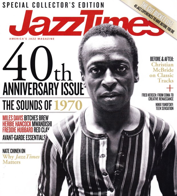 The timing has a nice symbolic ring to it. Bitches Brew has always been seen as a touchstone recording that fused the worlds of modern jazz and heavy rock. Actually, Miles had been leading up to this magnum opus with the four studio albums he released in 1968 and ’69, especially In a Silent Way and Miles in the Sky. Electric instruments and groove-like jams became more predominant and the players he had under his wing (Herbie Hancock, Wayne Shorter, Chick Corea, John McLaughlin, Joe Zawinul and others) would all become key players in the jazz-rock “fusion” genre that took flight in the Seventies.