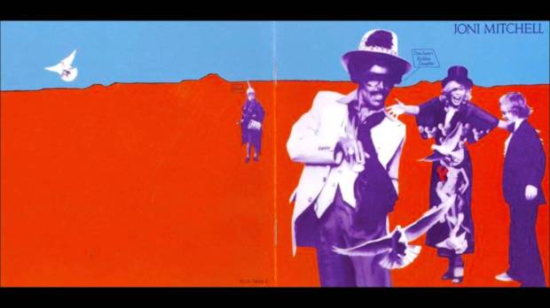 Four decades removed from the bad press (the headline of Creem magazine’s write-up was “Don Juan Says He Doesn’t Know You”) most of this album proves to be a pretty appealing listen. At 59 minutes, DJRD its not time demanding and it gradually reveals its charms, even if they are sometimes held out at arm’s length. The glittering/tawdry Miami Beach vignette “Otis and Marlena” is a top-notch example of Mitchell’s descriptive powers (“the street lights fade away/on louvered blocks in sea green air”) and if the seven-minute percussion instrumental that follows seems a world away from “Both Sides Now” it doesn’t mean it’s not worth hearing. The heady rush of words on the title track proves that Joni can still write with the best of them, even the vintage Dylan that it resembles. The 34 year-old Mitchell is taking stock (“Last night the ghost of my old ideals/Reran on channel five”) of both her life and her artistic image, flatly stating, “There is danger and education in living out such a reckless lifestyle.” These sentiments, and the hint of retreat from her jet-setting aura, also run through Don Juan’s magnum opus, the sixteen-minute “Paprika Plains.” On either side of its long Aaron Copeland-channeling middle section, writ large for orchestra and Mitchell’s emphatic piano, are lyrics where our ambivalent heroine cinematically steps out on a balcony to escape a “stifling” high-society affair, the better to dwell on the simpler times of her childhood on the Canadian prairie. “I take my sharpest fingernail and slash the globe to see/Below me, vast Paprika plains”, Mitchell sings, before the daydream dissipates and she’s obliged to head back inside.