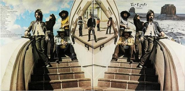By the end of the Sixties, the Byrds were coming out of a long transitional period. Vital founding members Gene Clark, David Crosby and Chris Hillman had flown the coop (if you will), migrating to solo projects or forming other groups in the expanding L.A. music scene. By 1970 they had settled on a quartet with McQuinn, ace guitarist Clarence White, drummer Gene Parsons and bassist Skip Battin. One big difference of this group was its more muscular sound. For the first time perhaps, the Byrds were a true concert attraction and so was fitting that for the band’s first double album, sides one and two were live recordings.