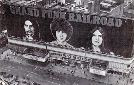 Terry Knight got Capitol Records to fork over $100,000 for this colossal Times Square billboard of Mel, Don and Mark (from left to right).